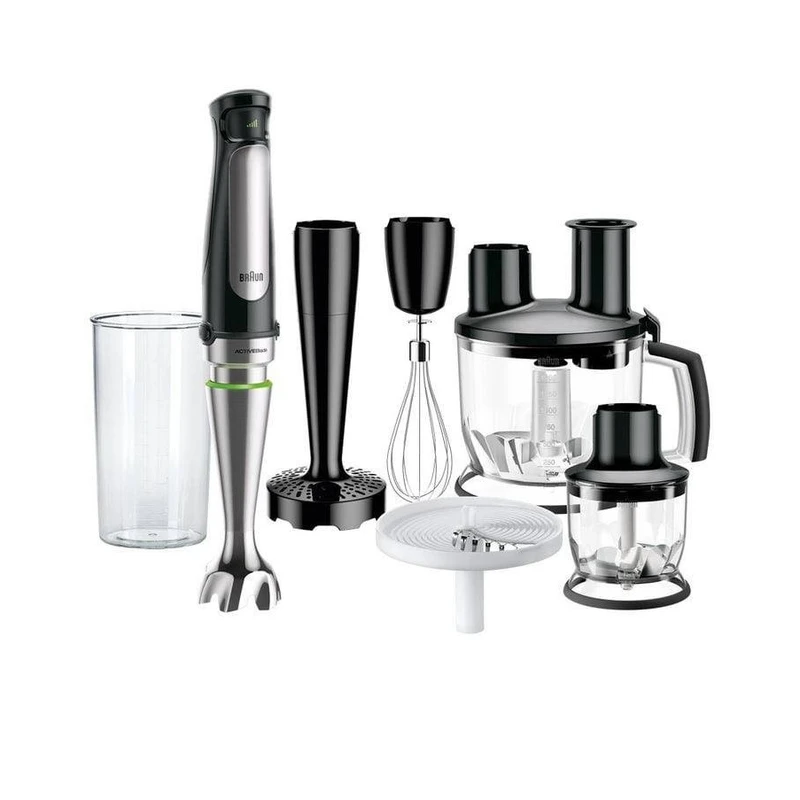 موتور پرقدرت با توان ۱۰۰۰ وات، پایه نسل جدید گوشت کوب برقی براون که میکس ریز تر را در سریع ترین زمان ممکن به شما میدهد، دور موتور اسمارت با فشار دکمه قدرت موتور کم و زیاد میشود، ظرف خردکن بزرگ با گنجایش ۱.۵ لیتر و خردکن کوچک گنجایش ۳۵۰ میلی لیتر، دارای پایه پوره کن، همزن فنری نرم جهت تهیه سس و خامه و .....، دارای پره خمیرزن، پنج رنده مختلف شامل : خلال درشت سیب زمینی و خلال ریز،رنده ریز و درشت و رنده حلقه ای (چیپسی) ، پایه گوشت کوب از جنس استیل ضد زنگ و ضد پاشش مواد غذایی،