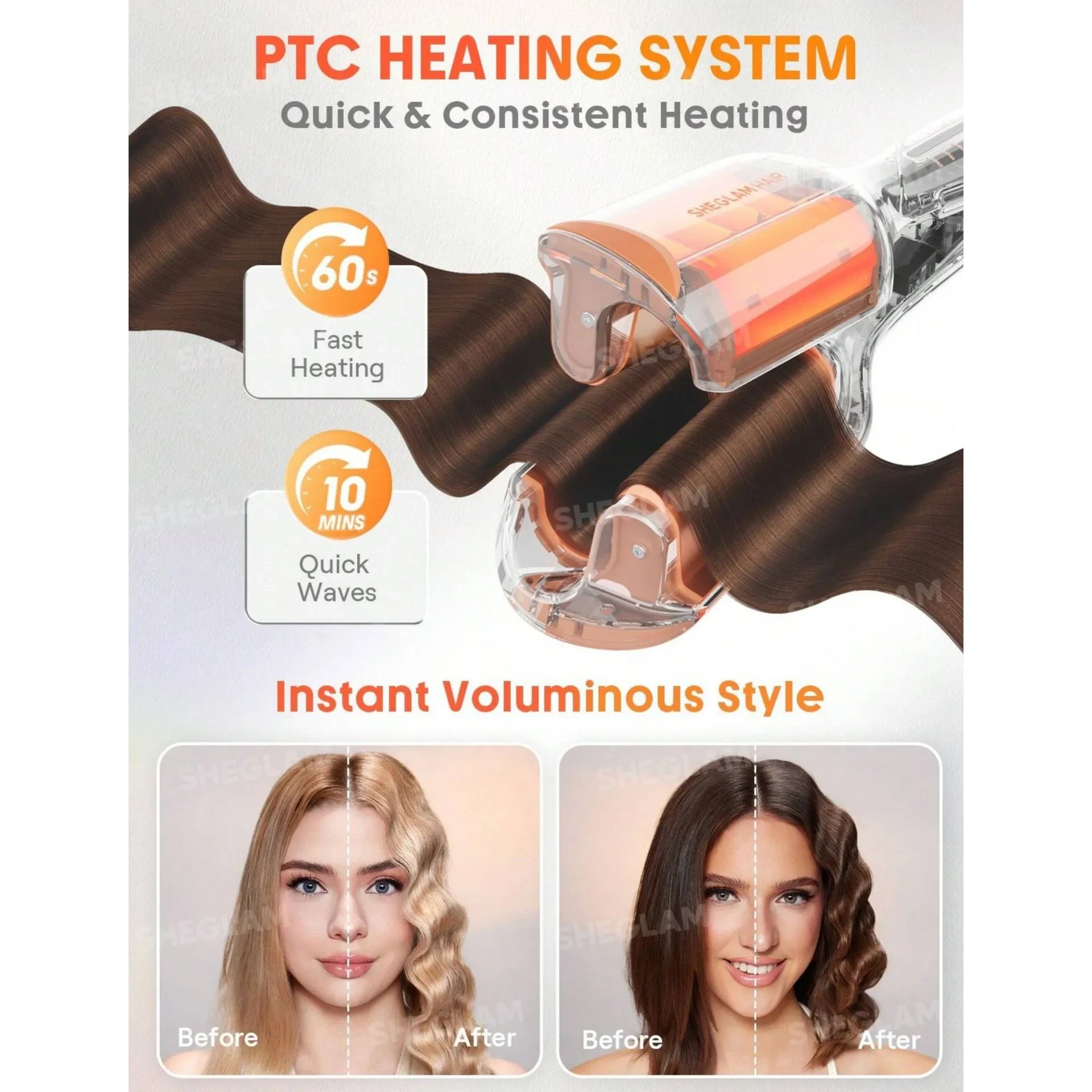 دستگاه ویو کننده مو شیگلم مدل Beach Babe سایز ۲۵ میلی متر